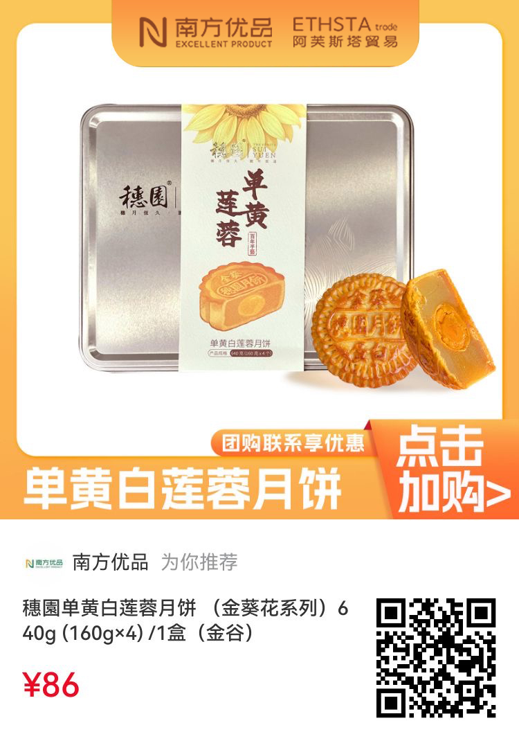 连年来,南边优品一直与金谷食物协同共进。8月15日,南边优品联袂金谷食物与阿芙斯塔,共同为“金葵花系列月饼”揭幕。三方以结伙传统匠心与改革精神为理念,积极构建多元化产物矩阵,死力将承载非遗技能的金谷月饼打造为逾越节令、结伙多元破钞场景的文化好意思食新标识。